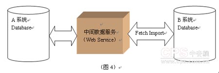圖7可以簡(jiǎn)單地看出“通用數(shù)據(jù)交換系統(tǒng)”的基本功能及工作原理,從第三方系統(tǒng)的數(shù)據(jù)安全性考慮,數(shù)據(jù)交換系統(tǒng)盡量避免直接對(duì)第三方的數(shù)據(jù)庫進(jìn)行操作。由此,我們可以引出“通用數(shù)據(jù)交換系統(tǒng)”中間件的概念。