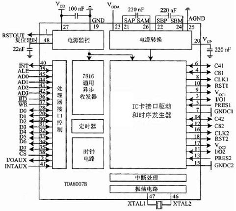 圖2.5 IC卡接口芯片TDA8007的原理框圖
