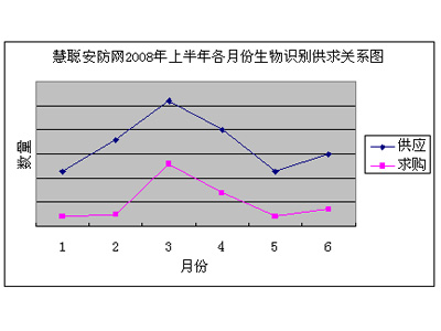 慧聰安防網(wǎng)2008年1月~8月生物識(shí)別供求關(guān)系圖