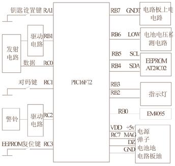 控制電路由上電保持電路,電壓檢測(cè)電路,無線發(fā)射電路和Microchip公司的單片機(jī)PIC16F72等組成(見圖4)。