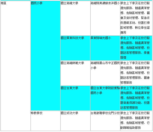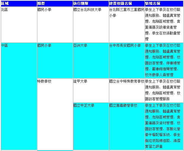 表1、“‘教育部’97年度校園安全應用 RFID 協(xié)助學生安全建置計劃”建置校園一覽表
