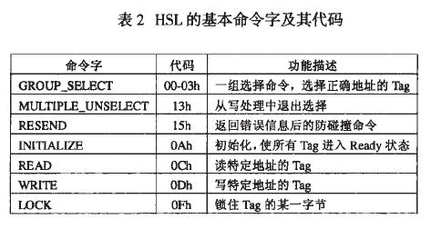 基于HSL 的Tag 通過執(zhí)行一系列由Reader 發(fā)出的命令,在三個狀態(tài)(READY、ID、DATA EXCHANGE)間切換,并完成防碰撞、EEPROM的數(shù)據(jù)讀寫等操作。HSL 的基本命令字及其代碼如下表。