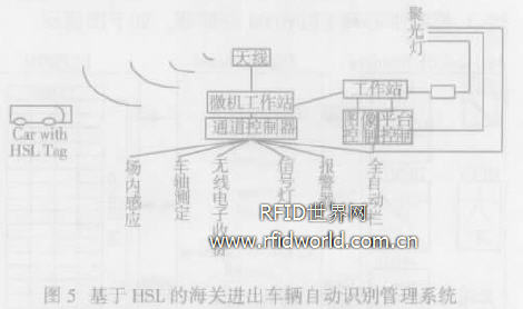 把UCODE HSL 用于海關(guān)進出車輛自動識別管理系統(tǒng)上,利用RFID 技術(shù)對附有Tag 標(biāo)簽的通行車輛進行自動識別, 能有效地提高閘口通行效率并對各種過關(guān)車輛進行追蹤管理。