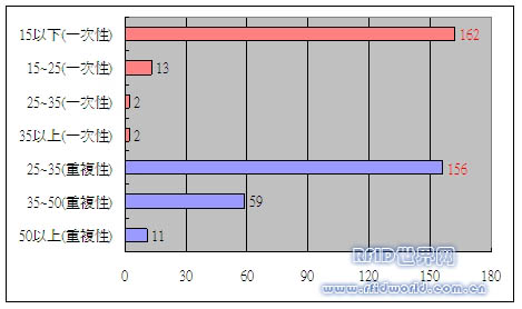 分析:由上圖可以得知,不管是重復(fù)性或是一次性的電子標(biāo)簽,都以最便宜的價格得到使用者的青睞。因此降低系統(tǒng)電子標(biāo)簽及系統(tǒng)建置成本為相當(dāng)重要的課題。