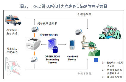圖5、 RFID開(kāi)刀房流程與病患身份識(shí)別管理示意圖