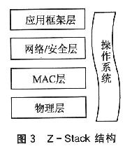 Z-Stack是由TI公司推出的基于ZigBee標(biāo)準(zhǔn)的協(xié)議棧軟件,可在www.focu.ti.com.cn免費(fèi)下載。它包含了ZigBee標(biāo)準(zhǔn)描述的各層次的功能組件模塊,向開發(fā)人員提供了一系列的API。通過調(diào)用這些API,可以實(shí)現(xiàn)ZigBee標(biāo)準(zhǔn)中各層次的相應(yīng)功能。基于這些功能模塊,可以更便捷地開發(fā)出各種基于ZigBee協(xié)議的應(yīng)用產(chǎn)品。圖3為Z-Stack結(jié)構(gòu)。(注:Z-Stack協(xié)議棧核心的部分,包括安全模塊、路由模塊、Mesh 網(wǎng)絡(luò)支持等,都只以庫的方式提供。)