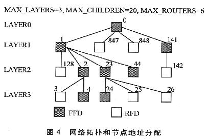 由于文章篇幅有限,不能依次介紹方案中比較關(guān)鍵的應(yīng)用層、硬件描述層、NWK層以及OSAL,以下著重描述NWK層的樹簇拓?fù)涞男纬梢约奥窂降陌l(fā)現(xiàn)與維護(hù)。