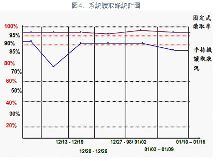 從圖4所示,目前就手持機人工讀取的讀取率部分,往往因不明原因造成無查核記錄,讀取狀況不穩(wěn)定甚至比自動化門哨略低,探其原因并非讀取器一次性讀取效能的問題。歸納主因為:人為疏忽,狀況有以下幾點。