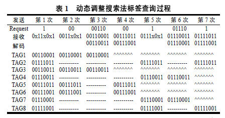 在表1中,“xx”表示碰撞位;“------”表示標簽不響應;“^^^^”表示標簽已被屏蔽為靜默狀態(tài)。每次查詢出ID值后即對標簽進行屏蔽。當?shù)?次執(zhí)行指令為Request(1)全返回指令,而只有2個標簽應答,可知所有標簽查詢完畢。此時可據(jù)確知的8個標簽ID值,按需進行其他操作。從表1可知用動態(tài)調整搜索法識別8個標簽只需發(fā)送7次指令,而后退式算法[3]需要2×8-1=15次。可見動態(tài)調整搜索法的工作效率有了很大改進。