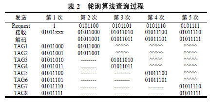 對于表2的8個標簽,用輪詢算法只需發(fā)送5次查詢指令,用動態(tài)調整搜索法要發(fā)送7次指令,而用后退式算法需發(fā)送15次。可見,對于卡號連續(xù)的情況,輪詢算法能更有效地實現(xiàn)標簽防沖撞。