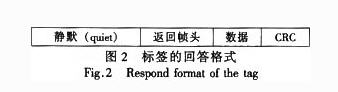 標(biāo)簽以幀為單位把數(shù)據(jù)傳送回閱讀器,一幀通常由靜默、返回幀頭、數(shù)據(jù)和CRC組成,見(jiàn)圖2。以下為各部分介紹。