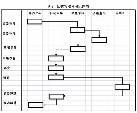 農(nóng)民團(tuán)體蔬果共同運(yùn)銷塑膠容器管理作業(yè)系統(tǒng)建置計(jì)劃研擬農(nóng)民團(tuán)體蔬果共同運(yùn)銷塑膠容器租借回收流程圖如下︰