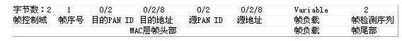 Zigbee協(xié)議定義了四種幀,分別是:命令幀,數(shù)據(jù)幀,beacon幀,確認幀。通用幀的格式如表1所示: