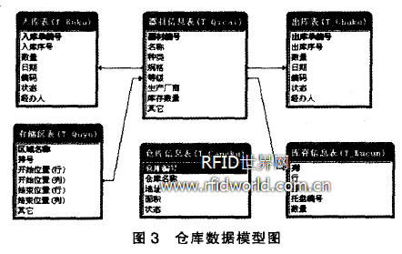 圖3為倉庫管理的數(shù)據(jù)模型,反映了各數(shù)據(jù)表之間的關系。