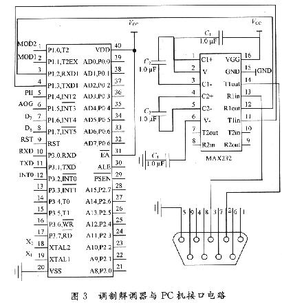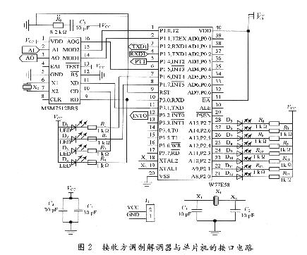 2 接收方調(diào)制解調(diào)器與單片機(jī)的接口電路