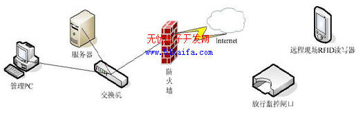 本系統(tǒng)組成簡單,無需復(fù)雜布線,主要有系統(tǒng)服務(wù)器,客戶端管理,無線手持終端PDA,放行監(jiān)控閘口等組成。系統(tǒng)結(jié)構(gòu)網(wǎng)絡(luò)圖如圖2 所示。