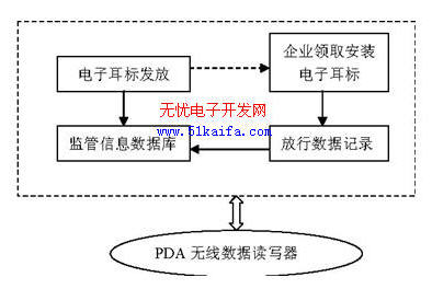 無線射頻識別技術(shù)(Radio Frequency Identificati on,RFID)是一種非接觸式的自動識別技術(shù),它通過射頻信號自動識別目標(biāo)對象并獲取數(shù)據(jù)信息,識別無須人工干預(yù),可工作于各種惡劣環(huán)境,并可同時識別多個目標(biāo)對象,操作快捷方便。一般的RFID 系統(tǒng)由電子標(biāo)簽(Tag)、閱讀器(Reader)、天線(Antenna)三大部分組成。與現(xiàn)在廣泛應(yīng)用的條形碼技術(shù)相比,電子標(biāo)簽具有防水、防磁、耐高溫、使用壽命長、數(shù)據(jù)可加密、讀取距離遠(yuǎn)、多目標(biāo)識別和可重復(fù)使用等優(yōu)勢,因而它比條形碼的應(yīng)用范圍更廣,使用更方便。目前,RFID技術(shù)已經(jīng)廣泛應(yīng)用于動物身份標(biāo)識、門禁管制、倉儲物流管理、航空行李分揀和高速公路自動收費(fèi)等領(lǐng)域。在檢驗檢疫監(jiān)管信息平臺中,為確保輸港澳的所有動物都是受監(jiān)控和符合質(zhì)量要求的,而傳統(tǒng)的動物身份標(biāo)識容易丟失信息,不易讀取識別,因此運(yùn)用RFID 技術(shù)可以為每個動物個體提供唯一的身份認(rèn)證,記錄動物的譜系背景以及其在整個生命周期中的飼養(yǎng)履歷,并可追蹤到運(yùn)輸、加工、銷售等下游環(huán)節(jié)的相關(guān)信息,從而形成一條詳盡的產(chǎn)、供、銷信息鏈,為動物管理及食品溯源追蹤發(fā)揮重要作用。