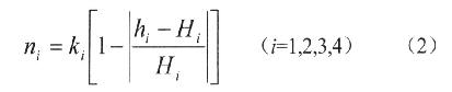 式中:Hi一經(jīng)驗值;ki—加權系數(shù);hi=1一濕度值。hi=2一糧食濕度與倉濕的差值。hi=3一糧食濕度與平均值的差值。hi=4一糧食濕度梯度值。