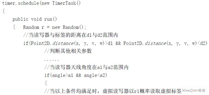 //此方法通過線程循環(huán)方式實(shí)現(xiàn)讀寫器對(duì)虛擬標(biāo)簽讀取概率的計(jì)算,t為讀寫器的讀取標(biāo)簽循環(huán)指令周期
