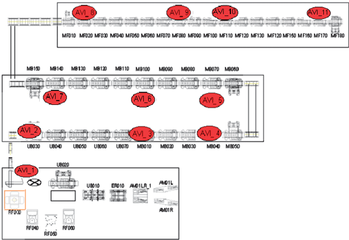 □ AVI-3/AVI-6/AVI-9/AVI-10設(shè)置在合裝工位,系統(tǒng)從RFID讀取車(chē)型信息后發(fā)布到電子看板上,以此來(lái)校驗(yàn)主線待裝配車(chē)身與從線來(lái)件是否車(chē)型一致。