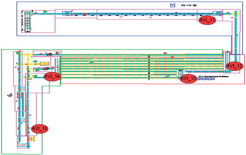 □ AVI-16為涂裝車(chē)間與焊裝車(chē)間交接點(diǎn),此讀寫(xiě)站連接到涂裝控制系統(tǒng),涂裝車(chē)間控制系統(tǒng)直接讀取焊裝車(chē)間載碼體獲取車(chē)型,顏色等信息。