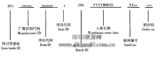 追溯鏈條上每個參與對象都是追溯系統(tǒng)的關鍵點;一旦產品出現(xiàn)問題,是否能夠查找到具體的問題來源和正確實施產品回收取決于參與對象的記錄是否健全。為確保追溯的完整性,追溯鏈條上每個參與對象都進行了唯一編碼。在種植階段,對種植者與地塊都進行編碼,地塊編碼以兩位基地數(shù)字加兩位地塊號組成,如農墾基地第18個地塊用0318表示;為每一位種植者發(fā)放一個RFID卡,每張RFID卡唯一對應1位種植者及其管理的地塊:RFID卡能快速準確地為手持機提供自動識別功能,操作快捷方便,同時在蔬菜基地的惡劣環(huán)境中即使RFID卡部分磨損也不會影響手持機的識別效果。在企業(yè)管理中,企業(yè)管理人員同樣有工作編碼,如包裝人員的編碼用包裝的拼音首字母加數(shù)字代表,如BZ12,避免同名的干擾。蔬菜脫離土地后按照批次進行編碼,以采收日期、地塊號和采收順序組合成批次號,可以唯一確定每一批蔬菜;可追溯碼對應批次號是根據(jù)中國EAN.UCC系統(tǒng)應用標識符國標《GB/T 16986.2003》設計的,見圖2所示。