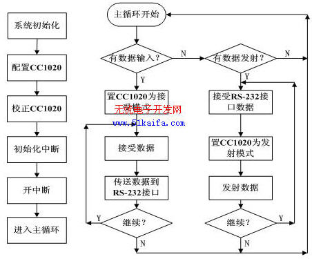 在設(shè)計(jì)軟件時(shí),需要注意各狀態(tài)轉(zhuǎn)換的時(shí)延。無(wú)線通信終端在發(fā)送數(shù)據(jù)前需要將電路置于發(fā)射狀態(tài);接收模式轉(zhuǎn)換成發(fā)射模式的轉(zhuǎn)換時(shí)間至少為0.5ms;可以發(fā)送任意長(zhǎng)度的數(shù)據(jù);發(fā)射模式轉(zhuǎn)換成接收模式的轉(zhuǎn)換時(shí)間至少為3ms。