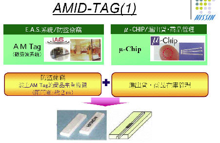 目前Hitachi Chemical、日本NEXT CO.,LTD以及全球AM商品防竊系統(tǒng)廠商美國WG公司共同開發(fā)出AMID系統(tǒng)。合作內(nèi)容為NEXT CO.、LTD將HITACHI CHECMICAL所開發(fā)的U-CHIP 2.45GHz晶片值入AM安全標(biāo)簽中,搭配WG公司所生產(chǎn)的AM商品防竊盜系統(tǒng),提供零售通路一個新型態(tài)的應(yīng)用。
