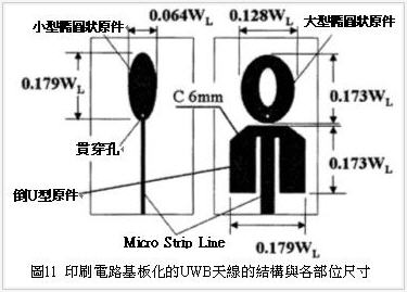 上述照片1的UWB天線是由金屬板構(gòu)成,基于未來量產(chǎn)與特性安定化等考慮,天線印刷電路基板化除了比較有利之外還可以將5mm的厚度薄形化,如此一來也比較容易這封裝到無線PAN等對(duì)厚度要求非常嚴(yán)苛的通訊產(chǎn)品,若考慮頻寬2GHz第3/3.5世代終端的資料傳輸應(yīng)用,UWB天線必需可以支援1.92GHz的頻域,若是IEEE802.16a的應(yīng)用則需支援上限11GHz的頻率,換句話說即使天線電路基板化也必需能夠含蓋1.92GHz至11GHz的頻域。
