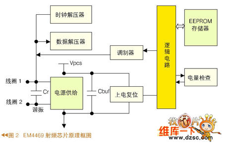 EM4469是Microelectronic公司推出的一種工作頻率為100~150kHz的具有讀/寫功能的非接觸式RFID射頻芯片,可以較低的功耗提供多種數(shù)據(jù)傳輸率和數(shù)據(jù)編碼方式。該射頻芯片不僅兼容ISO11784/11785標(biāo)準(zhǔn),而且還符合ISO FDX/B動物識別標(biāo)準(zhǔn),因此被廣泛應(yīng)用于各種應(yīng)用管理系統(tǒng)中,尤其是動物識別和跟蹤管理中。其主要特點如下: