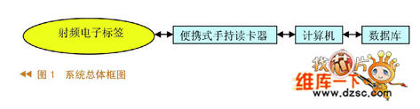 基于RFID技術(shù)的動物識別和跟蹤管理系統(tǒng)主要由射頻電子標(biāo)簽、便攜式手持讀寫器以及計算機(jī)網(wǎng)絡(luò)及數(shù)據(jù)庫管理軟件組成。系統(tǒng)組成如圖1所示。