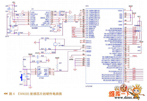 讀卡器射頻芯片的硬件電路圖如圖4所示。