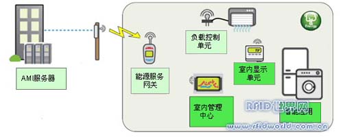 從圖我們看出,家庭中的電器,包括空調(diào),洗衣機(jī),冰箱等,構(gòu)成一個(gè)典型的無線傳感器網(wǎng)絡(luò),通過能源管理網(wǎng)關(guān)和安裝在戶外的無線轉(zhuǎn)發(fā)路由器,實(shí)時(shí)傳輸?shù)侥茉垂倦娔X化管理網(wǎng)絡(luò)和數(shù)據(jù)庫,實(shí)現(xiàn)對家庭能源的管理。