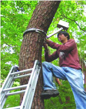 圖2、架設在佛國寺后樹木上的RFID讀取器