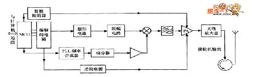 (2)編碼電路根據(jù)MCU微控制器傳來的操作命令進行編碼,形成基帶信號送到整形電路和限幅電路進行處理,處理后的信號送往混頻器(上變頻)。