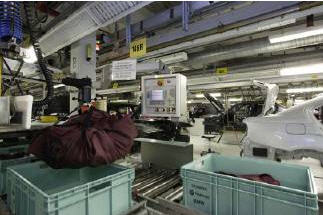 系統(tǒng)可依據(jù)這項資訊,將運送箱存放至指定位置。如果對應的車體是從高架存放設施輸送到組裝線的起點,中央電腦也會依據(jù)該訂購編號,調度相關的裝配生產線,系統(tǒng)會從存放地點取出裝配生產線,經傳輸站臺再次辨識后,再分派到組裝制程。在裝入車體前,第三個站臺會再次確認資料,之后便會將儲存的資料清除,以主動避免日后發(fā)生混淆。