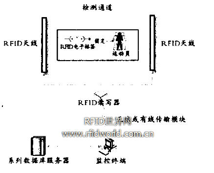 2)系統(tǒng)構(gòu)成。系統(tǒng)由硬件和軟件兩部分組成。其中硬件部分包括:檢測(cè)通道、RFID 數(shù)據(jù)庫(kù)服務(wù)器 監(jiān)拉終端讀寫器、傳輸模塊、監(jiān)控終端、數(shù)據(jù)庫(kù)服務(wù)器和RFID標(biāo)簽;軟件部分包括:后臺(tái)數(shù)據(jù)庫(kù)和應(yīng)用軟件。如圖2所示。
