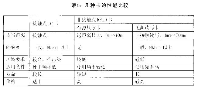 根據(jù)表l可知,該卡的容量人,能夠用于門禁卡和電了錢包。其缺點(diǎn)很明顯, 即,它是通過(guò)觸點(diǎn)的接觸進(jìn)行讀寫卡的。當(dāng)它用于使用頻率極高的場(chǎng)合時(shí),極容易 因污染、扭曲、靜電等原因而導(dǎo)致IC 的損壞,資料的丟失。因而,不適合用作門禁卡和電子錢包。