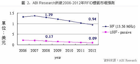 圖2、ABI Research所做2006-2012年RFID標(biāo)簽市場(chǎng)預(yù)測(cè)