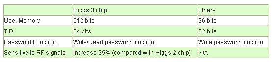 表1、Alien Technology-Higgs 3 chip