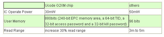 表3、NXP Ucode G2XM chip