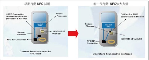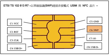 《圖三SWP連接非接觸式USIM與NFC晶片》