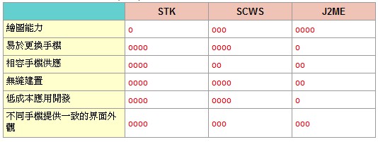 ●Java MIDlet (J2ME):這是手機(jī)專用的獨(dú)立應(yīng)用軟體。它的建置較復(fù)雜(需要下載)和維護(hù)成本較高(每款手機(jī)都需要專門設(shè)計(jì)的應(yīng)用軟體);優(yōu)點(diǎn)則是提供強(qiáng)大的繪圖能力,是需要這類功能時(shí)的最佳選擇。