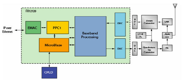基帶任務(wù)和數(shù)字化射頻信道化處理,可提高全FPGA解決方案的吸引力和集成度。FGPA功能、DSP功能,以及基帶處理功能,都可被整合于一個帶有嵌入式處理器的FPGA。