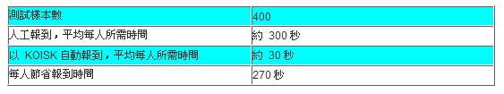 表3、KOISK自動(dòng)報(bào)到實(shí)測(cè)效益