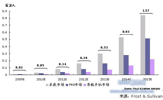 從用戶結(jié)構(gòu)來(lái)看,車載系統(tǒng)、PND以及導(dǎo)航手機(jī)3類終端中,F(xiàn)rost & Sullivan認(rèn)為車載導(dǎo)航用戶將成為動(dòng)態(tài)交通信息服務(wù)的主要用戶。