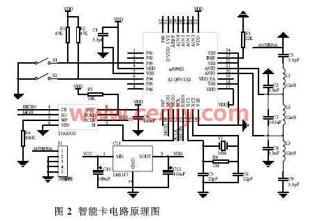 2.2 基于nRF9E5的智能卡硬件設(shè)計(jì)