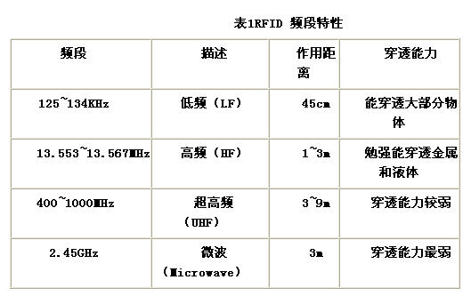 而高頻功率損耗與傳播距離的平方成正比。由于高頻以波束的方式傳播,故可用于智能標(biāo)簽定位。其缺點(diǎn)是容易被障礙物所阻擋,易受反射和人體擾動(dòng)等因素影響,不易實(shí)現(xiàn)無線作用范圍的全區(qū)域覆蓋。高頻頻段數(shù)據(jù)傳輸率相對(duì)較高,且通訊質(zhì)量較好。表1為RFID 頻段特性表。