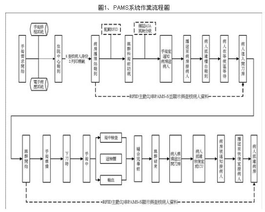 PAMS系統(tǒng)除了應(yīng)用RFID的辨識(shí)及追蹤特性提升手術(shù)病人安全,系統(tǒng)本身設(shè)置的溝通平臺(tái),更整合全院各單位特性及需求,改善手術(shù)流程各環(huán)節(jié)。在手術(shù)表單部分,針對(duì)門診、住院、急診不同手術(shù)特性以及不同手術(shù)科別做設(shè)計(jì),使用者不會(huì)因手術(shù)時(shí)間過短而遺失重要訊息;在麻醉咨詢方面,手術(shù)患者手術(shù)前的麻醉訪視更達(dá)到100%;在護(hù)送方面,患者護(hù)送需求透過系統(tǒng)使用界面更具體,派送人力更有效率的運(yùn)用;在手術(shù)器械方面,器械有效日期的警示,簡(jiǎn)便器械庫(kù)存使用管理;在病理檢體方面,人工切片檢查結(jié)果可于線上即時(shí)呈現(xiàn),減少檢體運(yùn)送的時(shí)間與錯(cuò)誤;在手術(shù)團(tuán)隊(duì)方面,手術(shù)時(shí)間的紀(jì)錄可以即時(shí)、同步且一致;在品質(zhì)指標(biāo)管理部分,可配合衛(wèi)生署申報(bào)上傳作業(yè),品質(zhì)指標(biāo)可提供給全院各單位各科別甚至各主治醫(yī)師作為醫(yī)療品質(zhì)改善的依據(jù)。