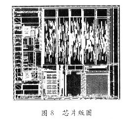 版圖設(shè)計(jì)主要包括模塊設(shè)計(jì)、芯片規(guī)劃、布局、布線等,是一個(gè)組合規(guī)劃和巧拼圖形的工作,是從邏輯信息向幾何信息的轉(zhuǎn)換。設(shè)計(jì)中采用SMIC0.35μmE2PROM CMOS工藝,E2PROM采用4個(gè)存儲(chǔ)單元。版圖規(guī)劃時(shí)要考慮好單元間的走線,降低布線難度,另外注意有特殊要求的單元模塊的處理,如把噪聲敏感的模塊隔離起來,版圖設(shè)計(jì)如圖8所示,左邊是射頻接口電路,左上和左下是儲(chǔ)能電容,右中上部分是數(shù)字控制電路,右中下部分是E2PROM電路。